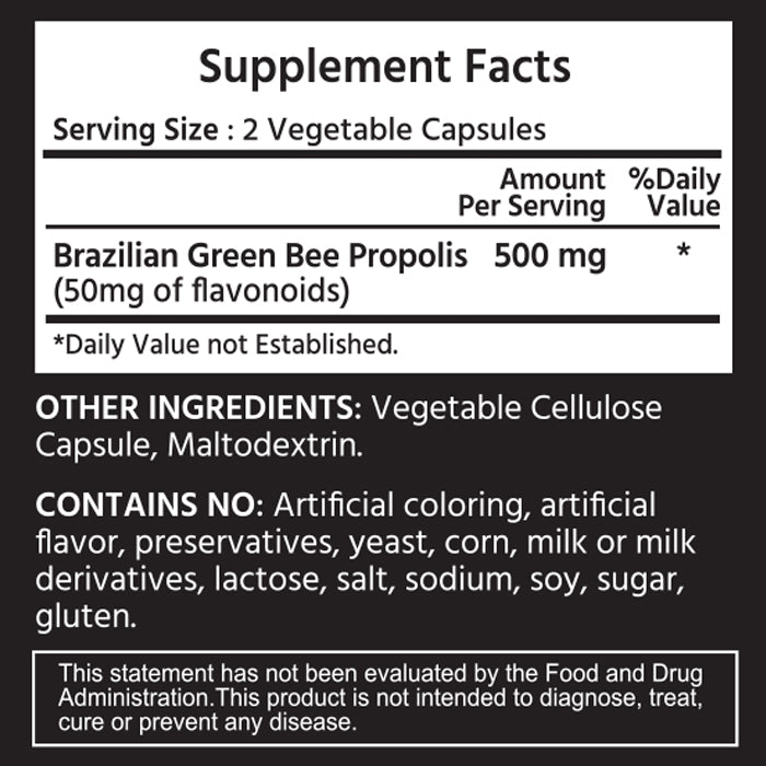 Propolis is composed mainly of the plant resins and exudates that bees gather. Propolis and its extracts have numerous applications in treating various diseases due to their antiseptic, anti-inflammatory, antioxidant, and antibacterial properties. The Brazilian green propolis is a specific type of propolis that contains Baccharis dracunculifolia resin as the main source. The BGP is made by Africanised honey bees and has a unique method of collecting propolis - cut the tips off the buds of the plant so that the propolis contains the complete vegetal tissues. This allows the BGP to be more easily absorbed.