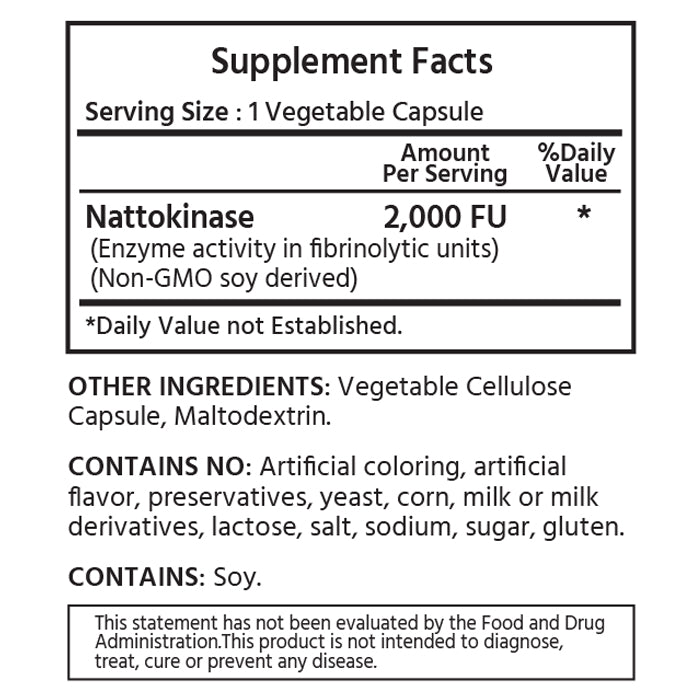 Premium Nattokinase 2000 FU (Per Capsule) - 120 Vegetable Capsules | Supports Circulatory and Cardiovascular Health | Non-GMO | Fermented and Freeze-Dried.