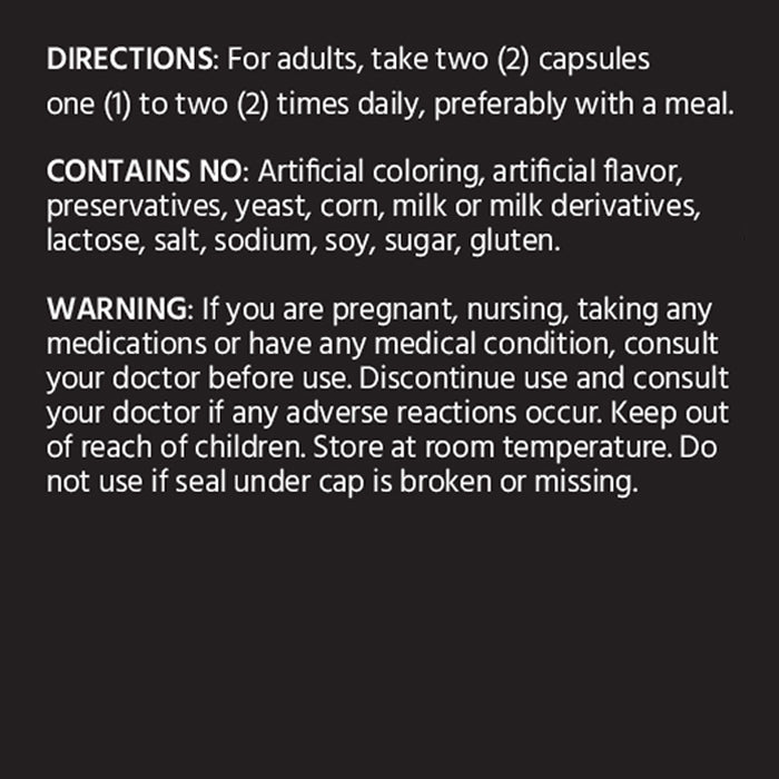For adults, take two (2) capsules one (1) to two (2) times daily, preferably with a meal.