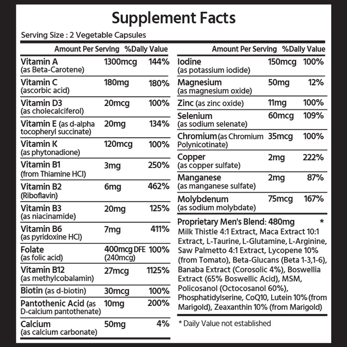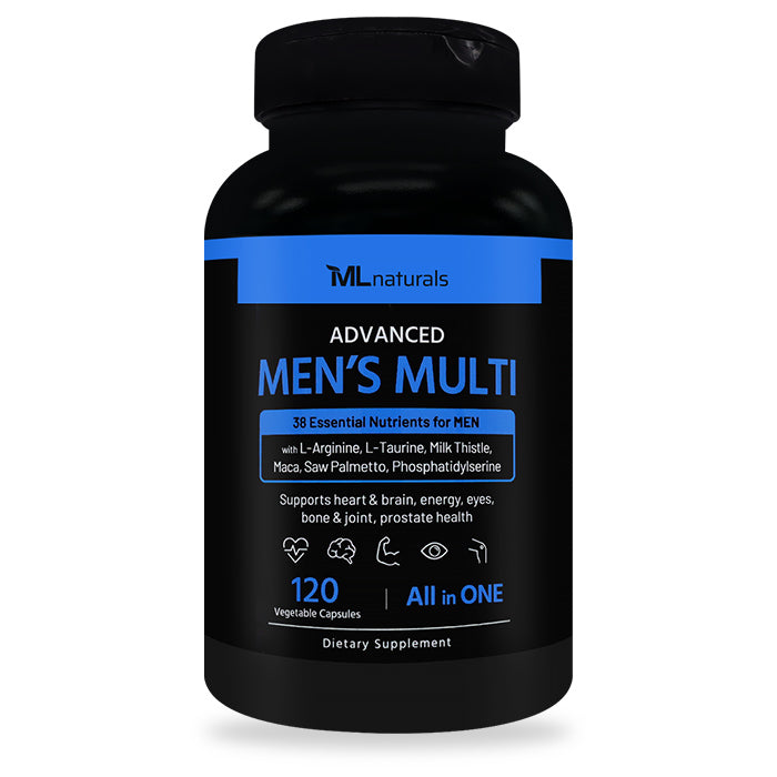 ML Naturals Advanced Men's Multivitamin 120 Vegetable Capsules| 38 Essential Nutrients for Men| 13 Multivitamins, 9 Minerals, 16 Essential Nutrients| Supports Heart & Brain Health, Prostate Health